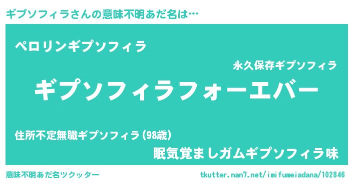 | ファンタジー風あだ名 | 『エターナルギプソフィラー』 |