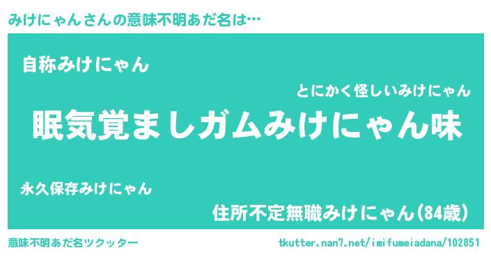 | ヘコむあだ名 | 『みけを』『みけにゃん(小並感)』 |