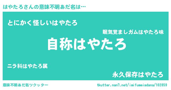 | 肩書あだ名 | 『はやたろ閣下』『はやたろ団長』 |