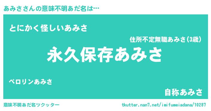 | 胡散臭い通販商品みたいなあだ名 | 『来世でも幸せになれる水素水…その名も「あみさ」』 |