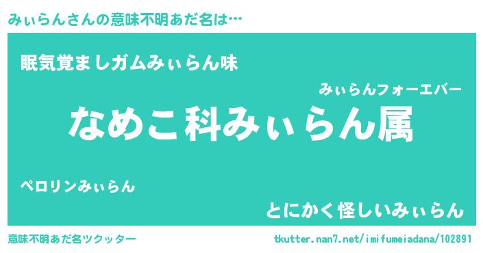 | ヒーロー風カッコイイあだ名 | 『愛の使者みぃらん』『炎刃騎士ミィ』 |