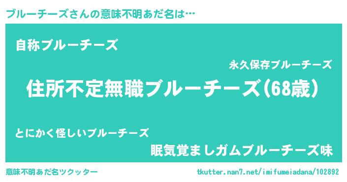 | ヒーロー風カッコイイあだ名 | 『仮面ブルダー』『ネオブルーチーズ』 |