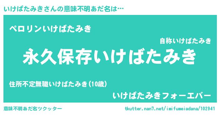 | 男性向けラノベタイトル風あだ名 | 『いけばたみきという概念が存在しない退屈な世界 』 |