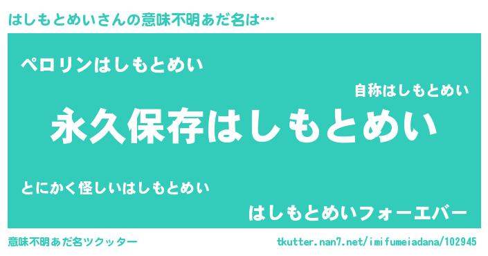 | 伝説のあだ名 | 『古より伝わる吟遊詩人はしもとめい』 |