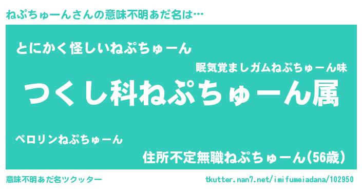 | 胡散臭い通販商品みたいなあだ名 | 『全米が絶賛したサプリメント…その名も「ねぷちゅーん」』 |