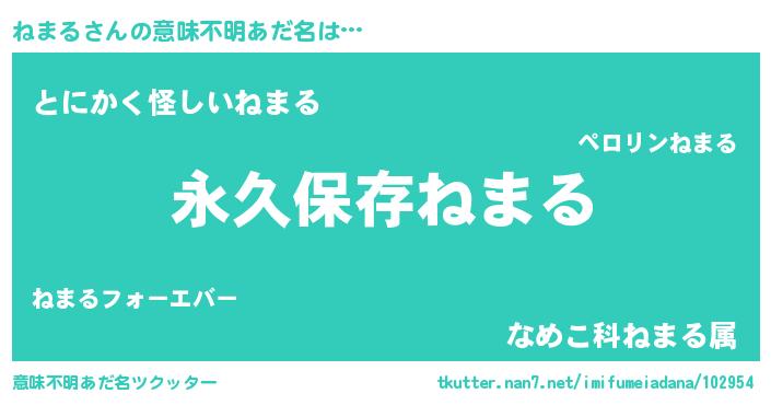 | 男性向けラノベタイトル風あだ名 | 『ねまるという概念が存在しない退屈な世界 』 |