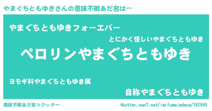 | 胡散臭い通販商品みたいなあだ名 | 『必ず成功する霊験あらたかなお札…その名も「やまぐちともゆき」』 |