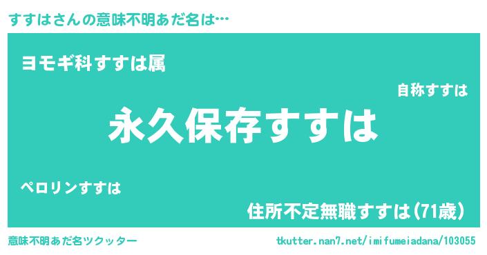 | 胡散臭い通販商品みたいなあだ名 | 『絶対に幸福をもたらす水素水…その名も「すすは」』 |