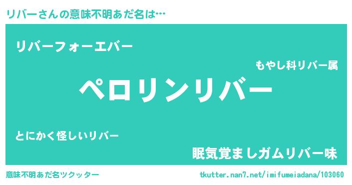 | 男性向けラノベタイトル風あだ名 | 『リバーの憂鬱』 |