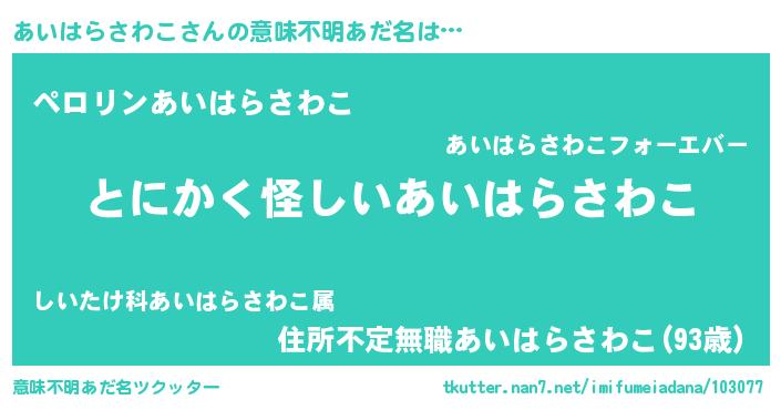 | 女子向けラノベタイトル風あだ名 | 『あいはらさわこは平凡を望む』 |