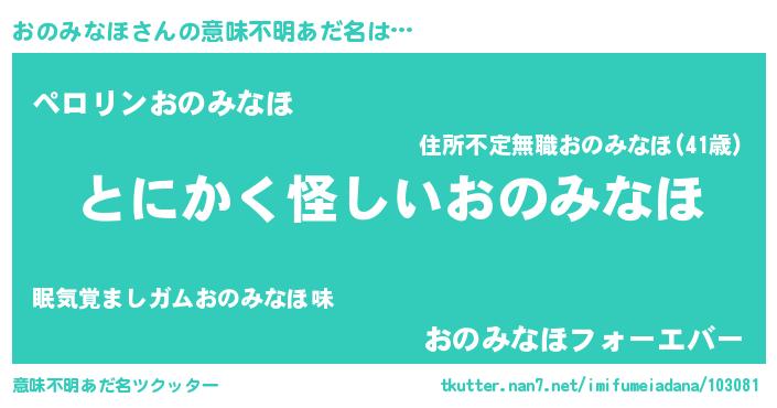 | 男性向けラノベタイトル風あだ名 | 『おのみなほの嫁は女の子じゃないと思った?』 |