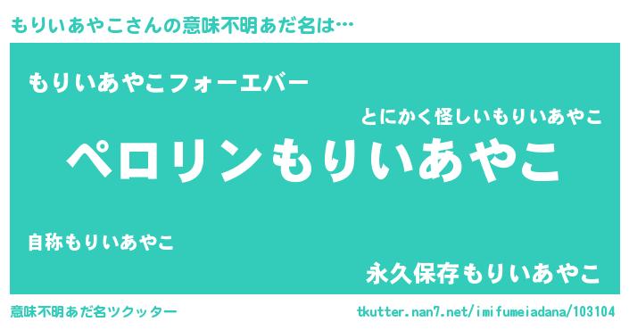 | ヒーロー風カッコイイあだ名 | 『スーパーモリイアヤコ』『暗黒騎士モリ』 |