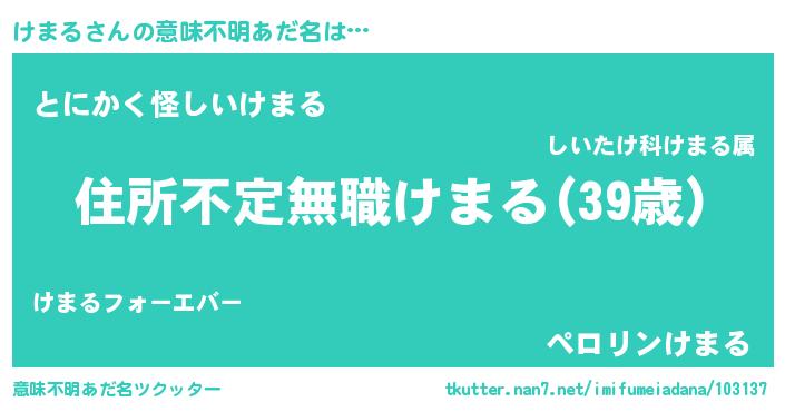 | 欧米人風あだ名 | 『けまる・ステッグマイヤー』 |