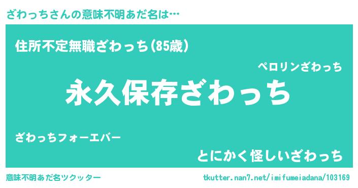 | 女子向けラノベタイトル風あだ名 | 『異世界で失敗しない100のざわっち』 |
