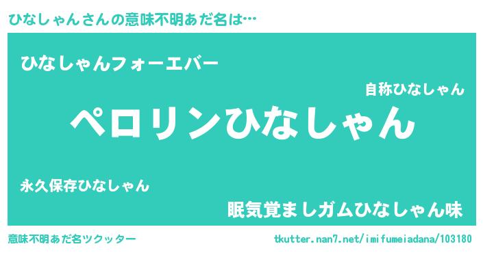 | 男性向けラノベタイトル風あだ名 | 『ひなしゃんの憂鬱』 |