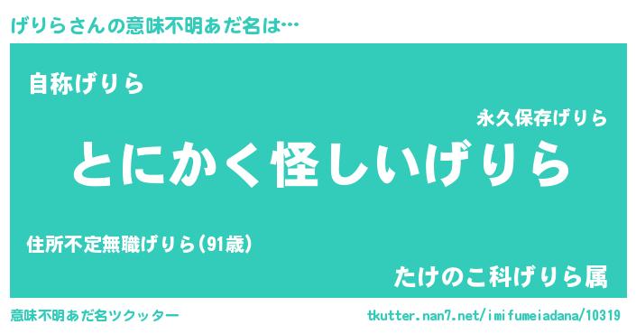 | 欧米人風あだ名 | 『げりら・ステッグマイヤー』 |