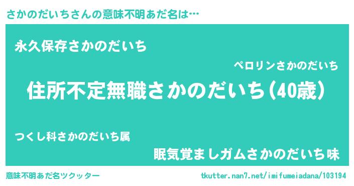 | 料理風あだ名 | 『さかのだいちのカルパッチョ風』 |