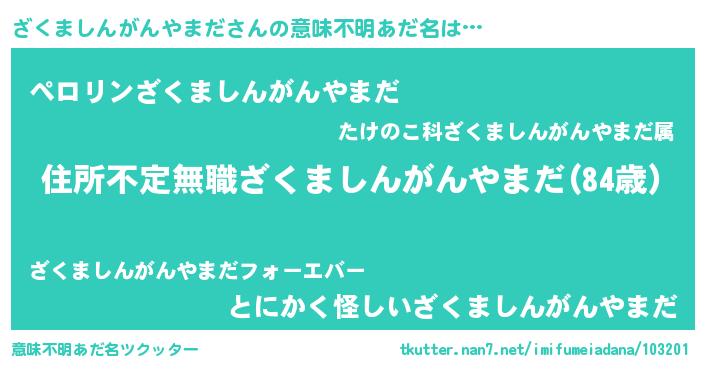 | 欧米人風あだ名 | 『ざくましんがんやまだ・ステッグマイヤー』 |