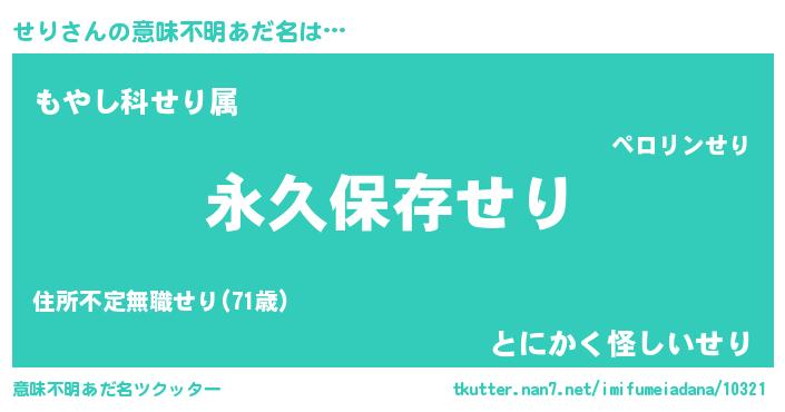 | 胡散臭い通販商品みたいなあだ名 | 『絶対に幸福をもたらす水素水…その名も「せり」』 |