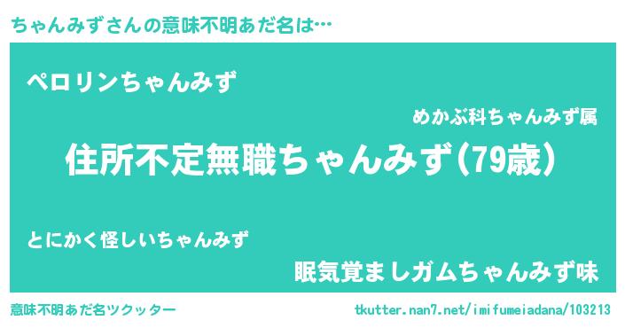 | ヒーロー風カッコイイあだ名 | 『仮面チャダー』『スーパーチャンミズ』 |
