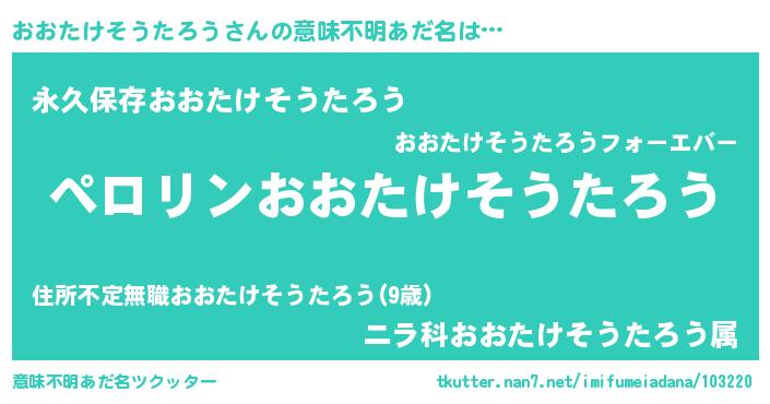 | 男性向けラノベタイトル風あだ名 | 『おおたけそうたろうの憂鬱』 |