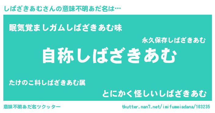 | 男性向けラノベタイトル風あだ名 | 『Re:しばざきあむから始める異世界生活』 |