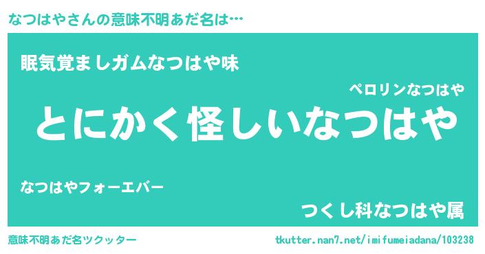 男性向けラノベタイトル風あだ名 | 『なつはやの嫁は女の子じゃないと思った?』 |