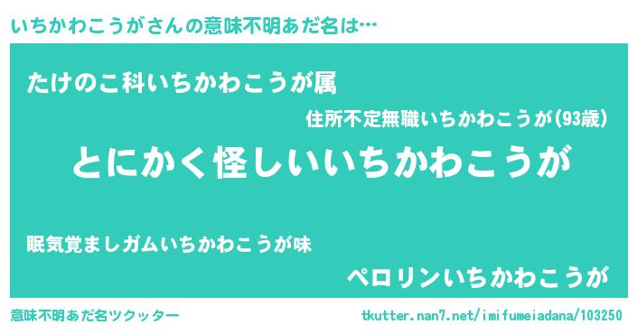 | 女子向けラノベタイトル風あだ名 | 『いちかわこうが様がみてる』 |