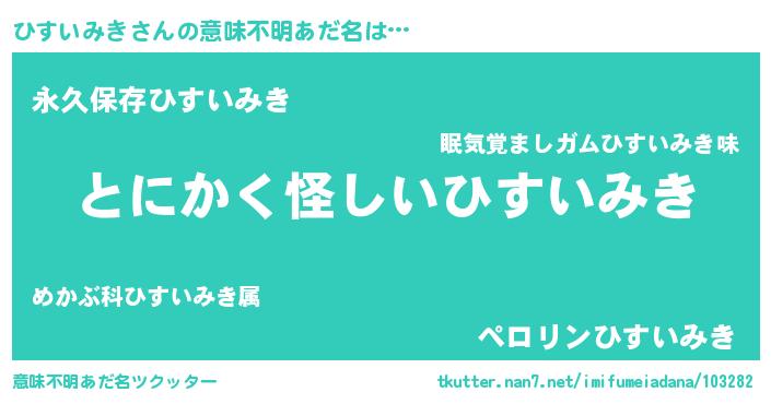 | 胡散臭い通販商品みたいなあだ名 | 『信頼と実績のサプリメント…その名も「ひすいみき」』 |
