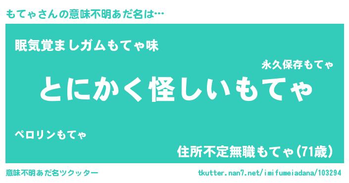 | 女子向けラノベタイトル風あだ名 | 『もてゃの卵を拾いまして』 |