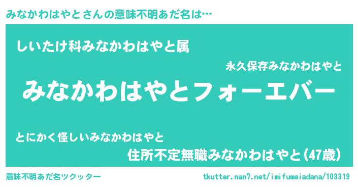 | ファンタジー風あだ名 | 『エターナルミナカワハヤトー』 |