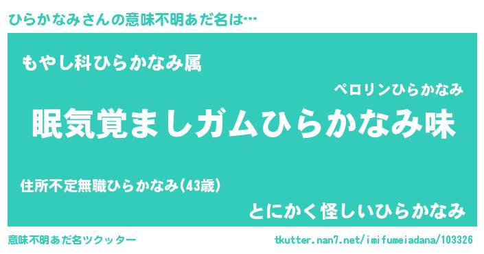 | 料理風あだ名 | 『ひらかなみの炊き込みご飯』 |