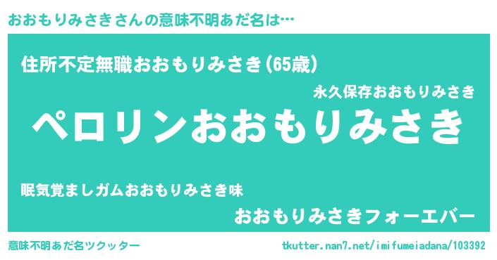 | 胡散臭い通販商品みたいなあだ名 | 『モテモテ間違いなし霊験あらたかなお札…その名も「おおもりみさき」』 |