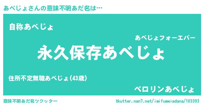 | 欧米人風あだ名 | 『アンジェラ・あべじょ』 |