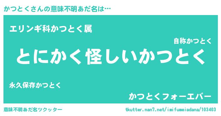 | 男性向けラノベタイトル風あだ名 | 『かつとくの嫁は女の子じゃないと思った?』 |