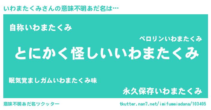 | 胡散臭い通販商品みたいなあだ名 | 『全米が絶賛したサプリメント…その名も「いわまたくみ」』 |
