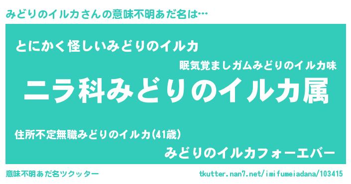 | 男性向けラノベタイトル風あだ名 | 『みどりのイルカに滅ぼされるだけの簡単なお仕事です』 |