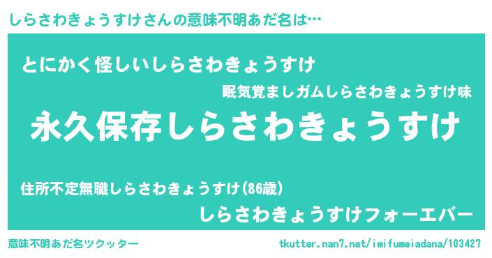 | 胡散臭い通販商品みたいなあだ名 | 『来世でも幸せになれる健康食品…その名も「しらさわきょうすけ」』 |