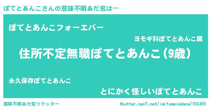 | 欧米人風あだ名 | 『ダレノガレぽてとあんこ』 |