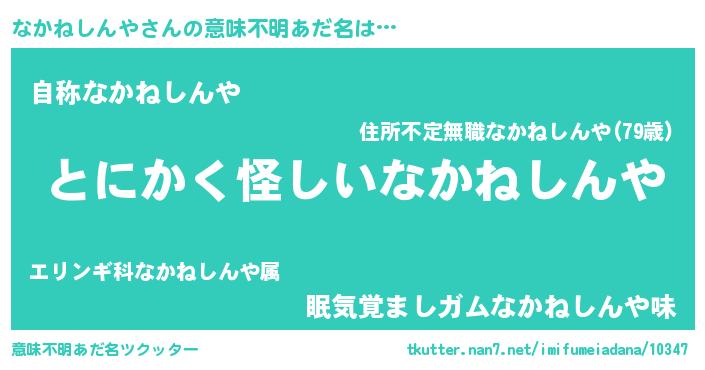 | 胡散臭い通販商品みたいなあだ名 | 『信頼と実績のサプリメント…その名も「なかねしんや」』 |