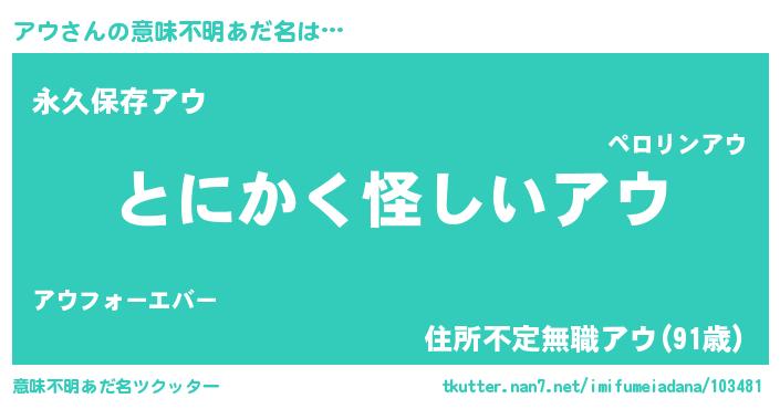 | ポケモン風あだ名 | 『メロアッウ』『ヒアウ』『ゼニアウ』 |