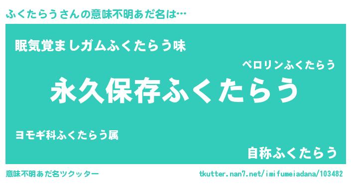 | 男性向けラノベタイトル風あだ名 | 『ふくたらうという概念が存在しない退屈な世界 』 |