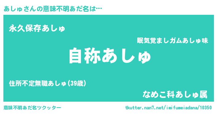 | ヘコむあだ名 | 『あしゅ(震え声)』『あしにゅー』 |