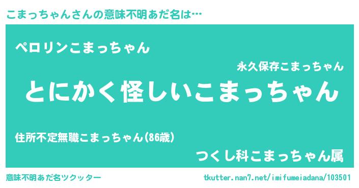 | 胡散臭い通販商品みたいなあだ名 | 『信頼と実績のサプリメント…その名も「こまっちゃん」』 |
