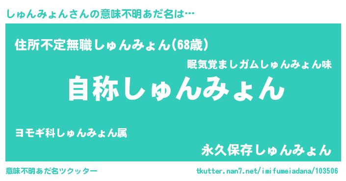 | ヘコむあだ名 | 『しゅんみょん(笑)』『しゅもー』 |