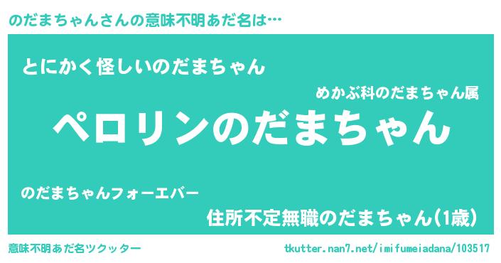 | 男性向けラノベタイトル風あだ名 | 『はたらくのだまちゃんさま!』 |