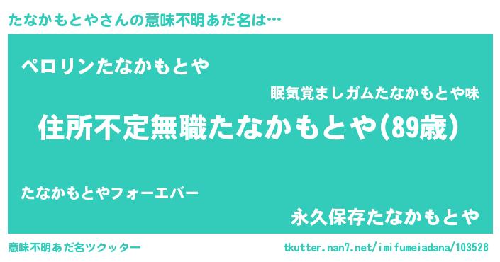 | 料理風あだ名 | 『たなかもとやのカルパッチョ風』 |