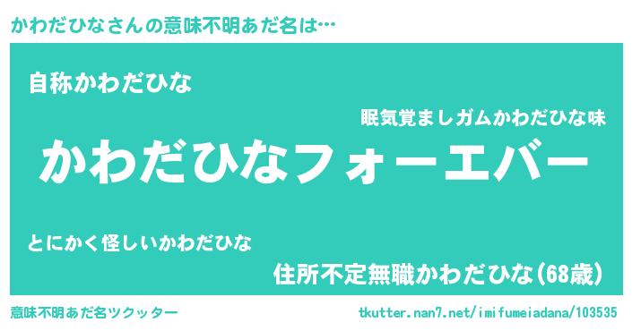 | 男性向けラノベタイトル風あだ名 | 『かわだひなに滅ぼされるだけの簡単なお仕事です』 |