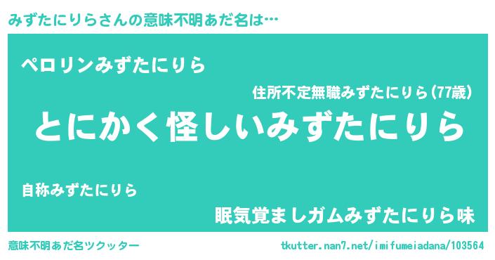 | ポケモン風あだ名 | 『ヒミズタニリラ』『ミズチュウ』 |
