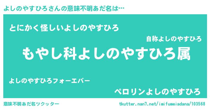 | 男性向けラノベタイトル風あだ名 | 『転生したらよしのやすひろだった件』 |
